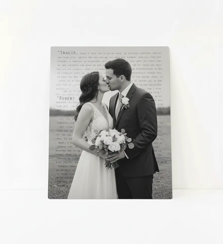 Premium-grade aluminum that won't fade, warp, or deteriorate. Your memories preserved as brilliantly as the day you said "I do."